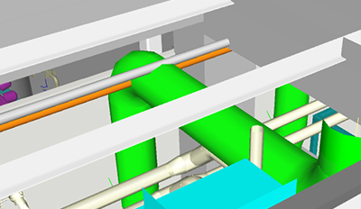 Clash detection is a large benefit of the BIM modeling process. Tools for project creating and administration provide us clash detection already during the design work. Both visual control and control using automatical functions where collision spots may be detected after having defined specific conditions and tolerances and afterwards they may be solved efficiently. |