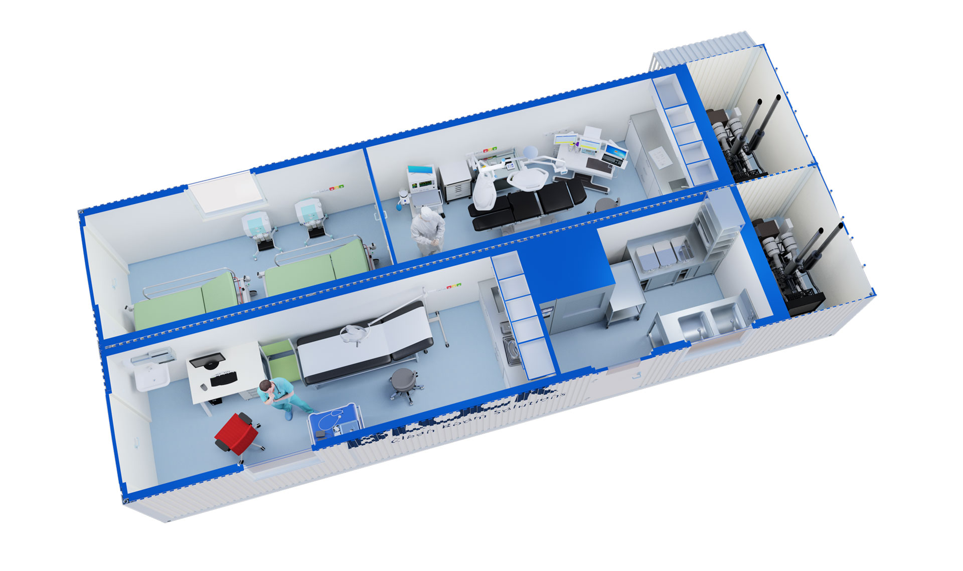 ISO containers are used to construct smaller buildings such as medical units of various orientations where there is a requirement for future mobility.